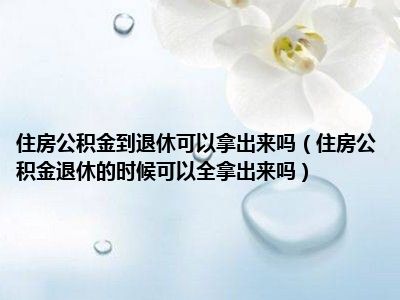 导读 目前大家应该是对住房公积金退休的时候可以全拿出来吗比较感兴趣的,所以今天好房网小编CC就来为大家整理了一些关于住房公积金退休的时候可