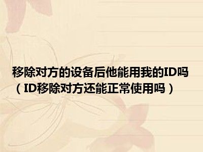 导读 1、ID移除对方还能正常使用吗2、去掉ID后仍然可以正常使用。用户修改密码后,你在别人手机上的ID账号不会被锁定,只会显示密码错误,需要你