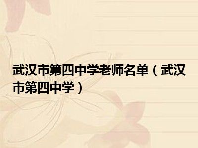 导读 相信目前很多小伙伴对于武汉市第四中学都比较感兴趣,那么小搜今天在网上也是收集了一些与武汉市第四中学相关的信息来分享给大家,希望能够