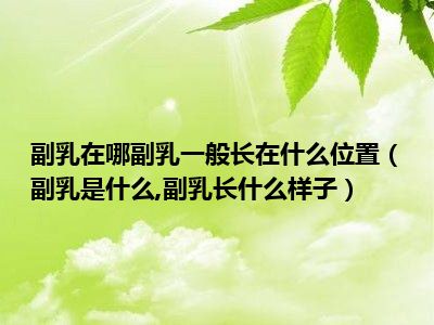 目前大家应该是对副乳是什么,副乳长什么样子比较感兴趣的,所以今天小编CC就来为大家整理了一些关于副乳是什么,副乳长什么样子方面的相关知识来分享给大家,希望大家会喜欢哦。