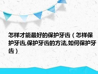 目前大家应该是对怎样保护牙齿,保护牙齿的方法,如何保护牙齿比较感兴趣的,所以今天小编CC就来为大家整理了一些关于怎样保护牙齿,保护牙齿的方法,如何保护牙齿方面的相关知识来分享给大家,希望大家会喜欢哦。