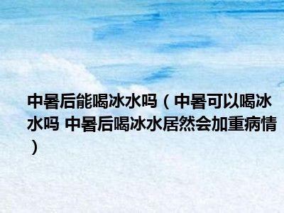 目前大家应该是对中暑可以喝冰水吗 中暑后喝冰水居然会加重病情比较感兴趣的,所以今天小编CC就来为大家整理了一些关于中暑可以喝冰水吗 中暑后喝冰水居然会加重病情方面的相关知识来分享给大家,希望大家会喜欢哦。