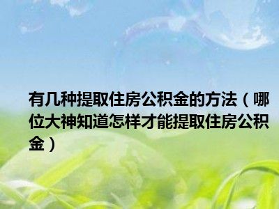 导读 目前大家应该是对哪位大神知道怎样才能提取住房公积金比较感兴趣的,所以今天好房网小编CC就来为大家整理了一些关于哪位大神知道怎样才能提