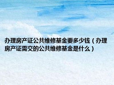 导读 目前大家应该是对办理房产证需交的公共维修基金是什么比较感兴趣的,所以今天好房网小编CC就来为大家整理了一些关于办理房产证需交的公共维