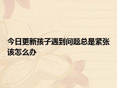 目前大家应该是对孩子遇到问题总是紧张该怎么办比较感兴趣的,所以今天好房网小编CC就来为大家整理了一些关于孩子遇到问题总是紧张该怎么办方面的相关知识来分享给大家,希望大家会喜欢哦。