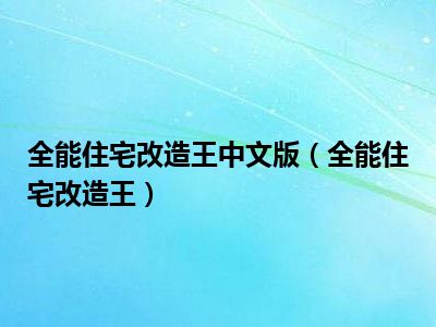 导读 相信目前很多小伙伴对于全能住宅改造王都比较感兴趣,那么小搜今天在网上也是收集了一些与全能住宅改造王相关的信息来分享给大家,希望能够