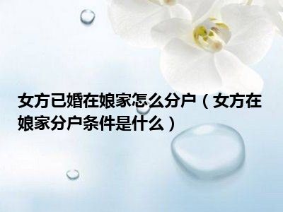 目前大家应该是对女方在娘家分户条件是什么比较感兴趣的,所以今天CC就来为大家整理了一些关于女方在娘家分户条件是什么方面的相关知识来分享给大家,希望大家会喜欢哦。