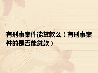 目前大家应该是对有刑事案件的是否能贷款比较感兴趣的,所以今天CC就来为大家整理了一些关于有刑事案件的是否能贷款方面的相关知识来分享给大家,希望大家会喜欢哦。
