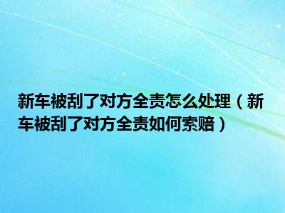 目前大家应该是对新车被刮了对方全责如何索赔比较感兴趣的,所以今天CC就来为大家整理了一些关于新车被刮了对方全责如何索赔方面的相关知识来分享给大家,希望大家会喜欢哦。