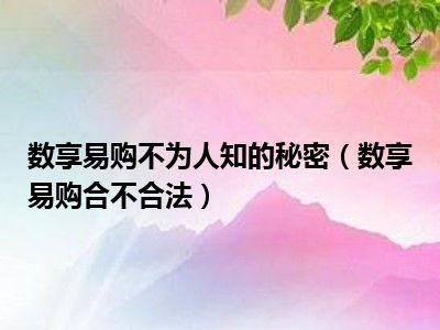 目前大家应该是对数享易购合不合法比较感兴趣的,所以今天CC就来为大家整理了一些关于数享易购合不合法方面的相关知识来分享给大家,希望大家会喜欢哦。