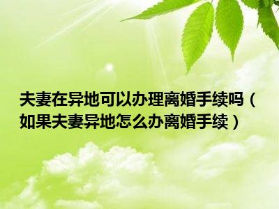 目前大家应该是对如果夫妻异地怎么办离婚手续比较感兴趣的,所以今天CC就来为大家整理了一些关于如果夫妻异地怎么办离婚手续方面的相关知识来分享给大家,希望大家会喜欢哦。