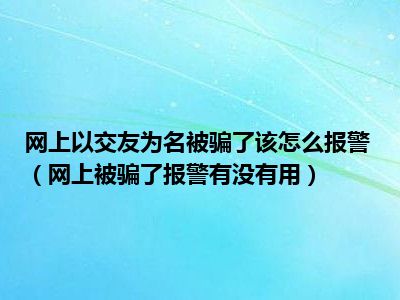 目前大家应该是对网上被骗了,报警有没有用比较感兴趣的,所以今天CC就来为大家整理了一些关于网上被骗了,报警有没有用方面的相关知识来分享给大家,希望大家会喜欢哦。