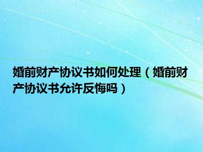 目前大家应该是对婚前财产协议书允许反悔吗比较感兴趣的,所以今天CC就来为大家整理了一些关于婚前财产协议书允许反悔吗方面的相关知识来分享给大家,希望大家会喜欢哦。