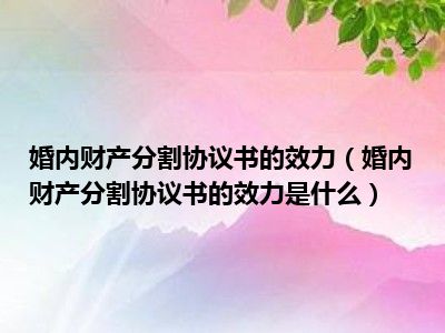 目前大家应该是对婚内财产分割协议书的效力是什么比较感兴趣的,所以今天CC就来为大家整理了一些关于婚内财产分割协议书的效力是什么方面的相关知识来分享给大家,希望大家会喜欢哦。