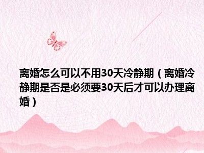 目前大家应该是对离婚冷静期是否是必须要30天后才可以办理离婚比较感兴趣的,所以今天CC就来为大家整理了一些关于离婚冷静期是否是必须要30天后才可以办理离婚方面的相关知识来分享给大家,希望大家会喜欢哦。