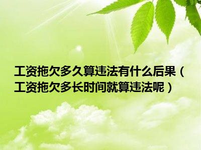 目前大家应该是对工资拖欠多长时间就算违法呢比较感兴趣的,所以今天CC就来为大家整理了一些关于工资拖欠多长时间就算违法呢方面的相关知识来分享给大家,希望大家会喜欢哦。
