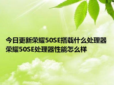 目前上述的内容应该能够为大家解答出大家对于荣耀50SE搭载什么处理器,荣耀50SE处理器性能怎么样的疑惑了,所以如果大家还想要了解更多的知识内容,也可以关注本站其他文章进行了解哦。