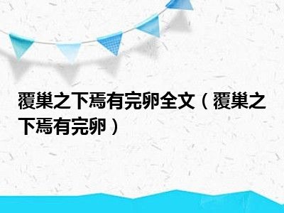 导读相信目前很多小伙伴对于覆巢之下,焉有完卵都比较感兴趣,那么小搜今天在网上也是收集了一些与覆巢之下,焉有完卵相关的信息来分享给大家,...