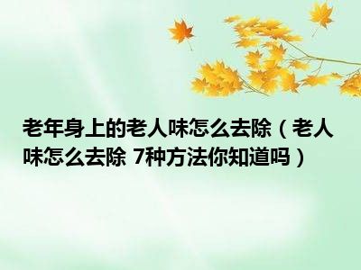 目前大家应该是对老人味怎么去除 7种方法你知道吗比较感兴趣的,所以今天小编CC就来为大家整理了一些关于老人味怎么去除 7种方法你知道吗方面的相关知识来分享给大家,希望大家会喜欢哦。