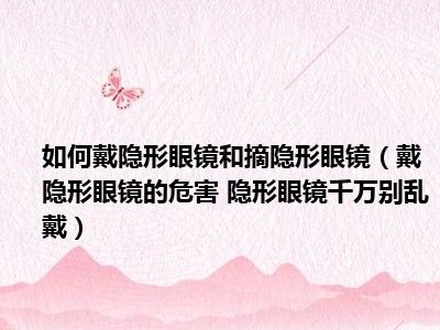 目前大家应该是对戴隐形眼镜的危害 隐形眼镜千万别乱戴比较感兴趣的,所以今天小编CC就来为大家整理了一些关于戴隐形眼镜的危害 隐形眼镜千万别乱戴方面的相关知识来分享给大家,希望大家会喜欢哦。