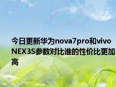 目前上述的内容应该能够为大家解答出大家对于华为nova7pro和vivoNEX3S参数对比,谁的性价比更加高的疑惑了,所以如果大家还想要了解更多的知识内容,也可以关注本站其他文章进行了解哦。