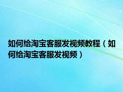 1、 如何给淘宝客服发视频