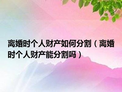 目前大家应该是对离婚时个人财产能分割吗比较感兴趣的,所以今天CC就来为大家整理了一些关于离婚时个人财产能分割吗方面的相关知识来分享给大家,希望大家会喜欢哦。