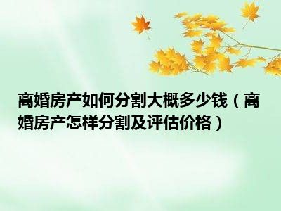 目前大家应该是对离婚房产怎样分割及评估价格比较感兴趣的,所以今天CC就来为大家整理了一些关于离婚房产怎样分割及评估价格方面的相关知识来分享给大家,希望大家会喜欢哦。