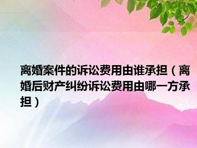 目前大家应该是对离婚后财产纠纷诉讼费用由哪一方承担比较感兴趣的,所以今天CC就来为大家整理了一些关于离婚后财产纠纷诉讼费用由哪一方承担方面的相关知识来分享给大家,希望大家会喜欢哦。