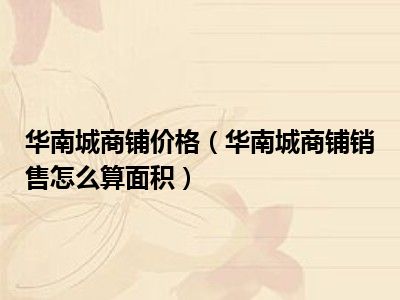 导读 目前大家应该是对华南城商铺销售怎么算面积比较感兴趣的,所以今天好房网小编CC就来为大家整理了一些关于华南城商铺销售怎么算面积方面的相