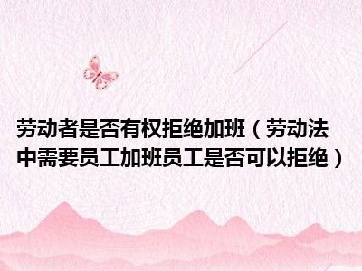 目前大家应该是对劳动法中需要员工加班员工是否可以拒绝比较感兴趣的,所以今天CC就来为大家整理了一些关于劳动法中需要员工加班员工是否可以拒绝方面的相关知识来分享给大家,希望大家会喜欢哦。