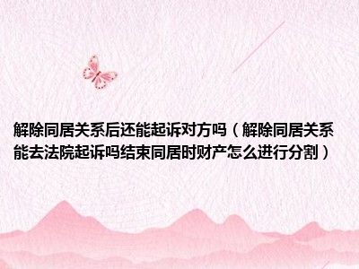 目前大家应该是对解除同居关系能去法院起诉吗结束同居时财产怎么进行分割比较感兴趣的,所以今天CC就来为大家整理了一些关于解除同居关系能去法院起诉吗结束同居时财产怎么进行分割方面的相关知识来分享给大家,希望大家会喜欢哦。