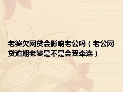 目前大家应该是对老公网贷逾期老婆是不是会受牵连比较感兴趣的,所以今天CC就来为大家整理了一些关于老公网贷逾期老婆是不是会受牵连方面的相关知识来分享给大家,希望大家会喜欢哦。