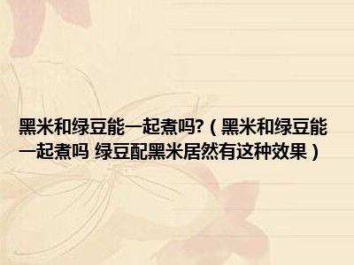 目前大家应该是对黑米和绿豆能一起煮吗 绿豆配黑米居然有这种效果比较感兴趣的,所以今天小编CC就来为大家整理了一些关于黑米和绿豆能一起煮吗 绿豆配黑米居然有这种效果方面的相关知识来分享给大家,希望大家会喜欢哦。