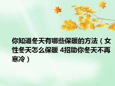 目前大家应该是对女性冬天怎么保暖 4招助你冬天不再寒冷比较感兴趣的,所以今天小编CC就来为大家整理了一些关于女性冬天怎么保暖 4招助你冬天不再寒冷方面的相关知识来分享给大家,希望大家会喜欢哦。