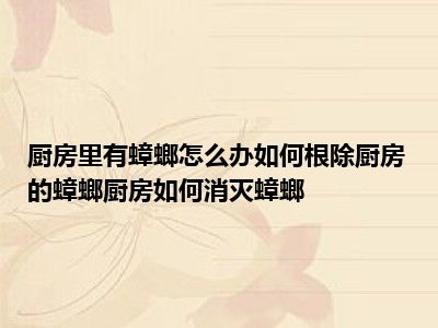 目前大家应该是对厨房里面有蟑螂怎么办 厨房有蟑螂怎么根除 厨房蟑螂怎么消灭干净比较感兴趣的,所以今天小编CC就来为大家整理了一些关于厨房里面有蟑螂怎么办 厨房有蟑螂怎么根除 厨房蟑螂怎么消灭干净方面的相关知识来分享给大家,希望大家会喜欢哦。