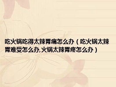 目前大家应该是对吃火锅太辣胃难受怎么办,火锅太辣胃疼怎么办比较感兴趣的,所以今天小编CC就来为大家整理了一些关于吃火锅太辣胃难受怎么办,火锅太辣胃疼怎么办方面的相关知识来分享给大家,希望大家会喜欢哦。