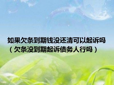 目前大家应该是对欠条没到期起诉债务人行吗比较感兴趣的,所以今天CC就来为大家整理了一些关于欠条没到期起诉债务人行吗方面的相关知识来分享给大家,希望大家会喜欢哦。