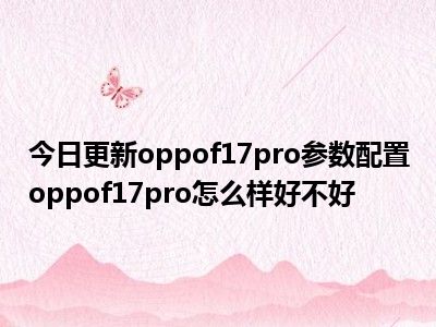 目前上述的内容应该能够为大家解答出大家对于oppof17pro参数配置,oppof17pro怎么样好不好的疑惑了,所以如果大家还想要了解更多的知识内容,也可以关注本站其他文章进行了解哦。