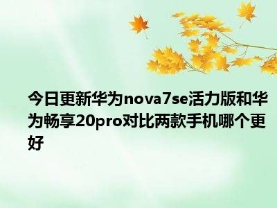 目前上述的内容应该能够为大家解答出大家对于华为nova7se活力版和华为畅享20pro对比,两款手机哪个更好的疑惑了,所以如果大家还想要了解更多的知识内容,也可以关注本站其他文章进行了解哦。