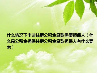办理住房公积金贷款必须找人担保,这是为了防范公积金贷款的风险,公积金贷款期限比较长(**长9年),风险较大,贷款期间可能会出现各种变故,如果借款人在贷款后出现较大变故,导致其不能正常偿还贷款,这样会给资金回收带来极大的风险,影响住房公积金的安全运转。为了确保发放贷款的安全性,必须要求借款人提供担保。 以自然人做住房公积金担保人的,住房公积金贷款担保人必须符合下列条件: 具有完全民事行为能力; 具有本地城镇常住户口或有效居留身份,收入相对稳定; 连续正常缴存住房公积金6个月以上且其帐户内有1年以上缴存额; 无公积金贷款余额及其它不良债务; 在借款人未全部偿还贷款本息期间不得提取住房公积金或申请住房公积金贷款; 住房公积金担保人年龄加担保贷款期限不得超过法定的退休年龄。 自然人住房公积金担保人应提供担保人身份证件、户口簿,收入证明及住房公积金帐号,并与受托银行签订保证合同。 如果为朋友当了公积金贷款担保人,则自己不能再次申请公积金贷款,只有等到贷款人将贷款还完了,自己才能贷款。并且一般情况下,缴纳了住房公积金的每个人只能当一个人的住房公积金贷款担保人,**多不能超过两人(含两人)的担保人,如果自己还要再次成为他人住房公积金贷款担保人,只有在贷款人的确找不到第二个担保人,且贷款额度不能超过12万元的情况下才可以。个人也可以二次申请住房公积金贷款,但必须在上一次公积金贷款偿还完毕后,次月才可申请二次贷款。另外,住房公积金贷款,从申请到贷款发放,市住房公积金中心承诺在5个工作日内完成受理、审批手续,加上到银行办理抵押借款手续,**长不超过15个工作日。职工办理了住房公积金贷款后,夫妻双方的住房公积金账户就随着贷款的发放而自动冻结,办理了住房公积金贷款的缴存人,在贷款期间内都