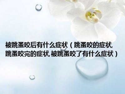 目前大家应该是对跳蚤咬的症状,跳蚤咬完的症状,被跳蚤咬了有什么症状比较感兴趣的,所以今天小编CC就来为大家整理了一些关于跳蚤咬的症状,跳蚤咬完的症状,被跳蚤咬了有什么症状方面的相关知识来分享给大家,希望大家会喜欢哦。