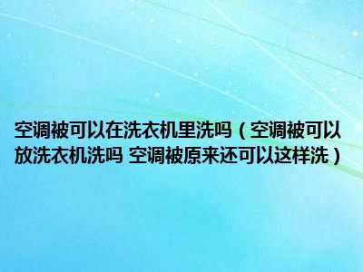 目前大家应该是对空调被可以放洗衣机洗吗 空调被原来还可以这样洗比较感兴趣的,所以今天小编CC就来为大家整理了一些关于空调被可以放洗衣机洗吗 空调被原来还可以这样洗方面的相关知识来分享给大家,希望大家会喜欢哦。
