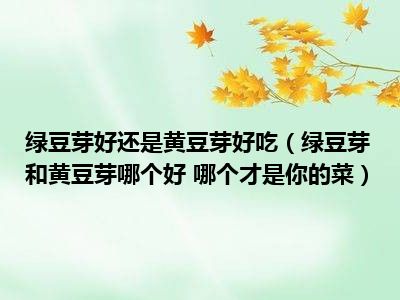 目前大家应该是对绿豆芽和黄豆芽哪个好 哪个才是你的菜比较感兴趣的,所以今天小编CC就来为大家整理了一些关于绿豆芽和黄豆芽哪个好 哪个才是你的菜方面的相关知识来分享给大家,希望大家会喜欢哦。