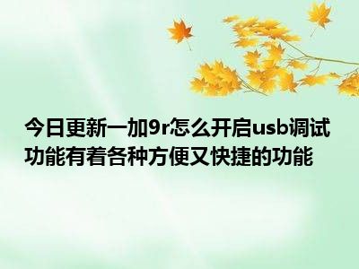 目前上述的内容应该能够为大家解答出大家对于一加9r怎么开启usb调试功能,有着各种方便又快捷的功能的疑惑了,所以如果大家还想要了解更多的知识内容,也可以关注本站其他文章进行了解哦。