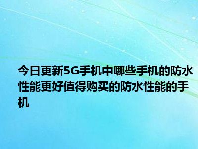 目前上述的内容应该能够为大家解答出大家对于5G手机中哪些手机的防水性能更好,值得购买的防水性能的手机的疑惑了,所以如果大家还想要了解更多的知识内容,也可以关注本站其他文章进行了解哦。