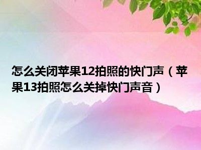 导读 1、苹果13拍照怎么关掉快门声音?2、苹果13手机没有单独设置拍照声音的选项。如果拍照需要关闭快门声音,只能设置为静音模式。按如下方式打