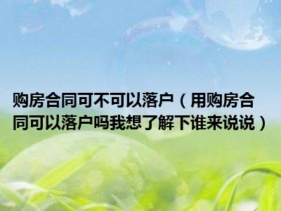 导读 目前大家应该是对用购房合同可以落户吗我想了解下谁来说说比较感兴趣的,所以今天好房网小编CC就来为大家整理了一些关于用购房合同可以落户