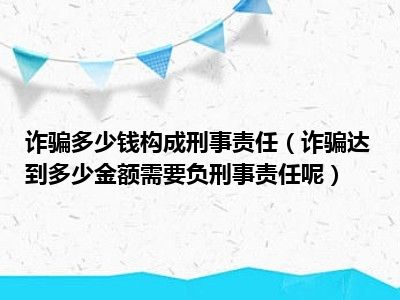 导读目前大家应该是对诈骗达到多少金额需要负刑事责任呢比较感兴趣的,所以今天CC就来为大家整理了一些关于诈骗达到多少金额需要负刑事责任呢方...