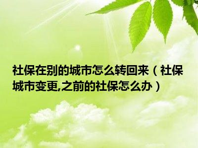 目前大家应该是对社保城市变更,之前的社保怎么办比较感兴趣的,所以今天CC就来为大家整理了一些关于社保城市变更,之前的社保怎么办方面的相关知识来分享给大家,希望大家会喜欢哦。